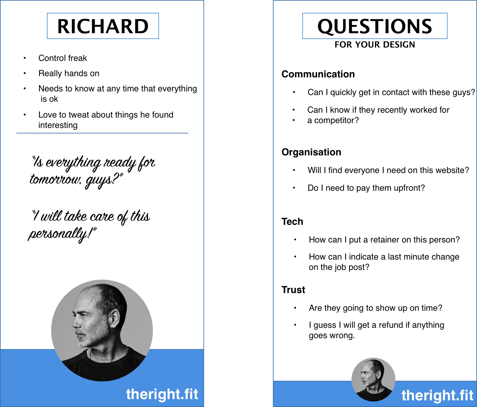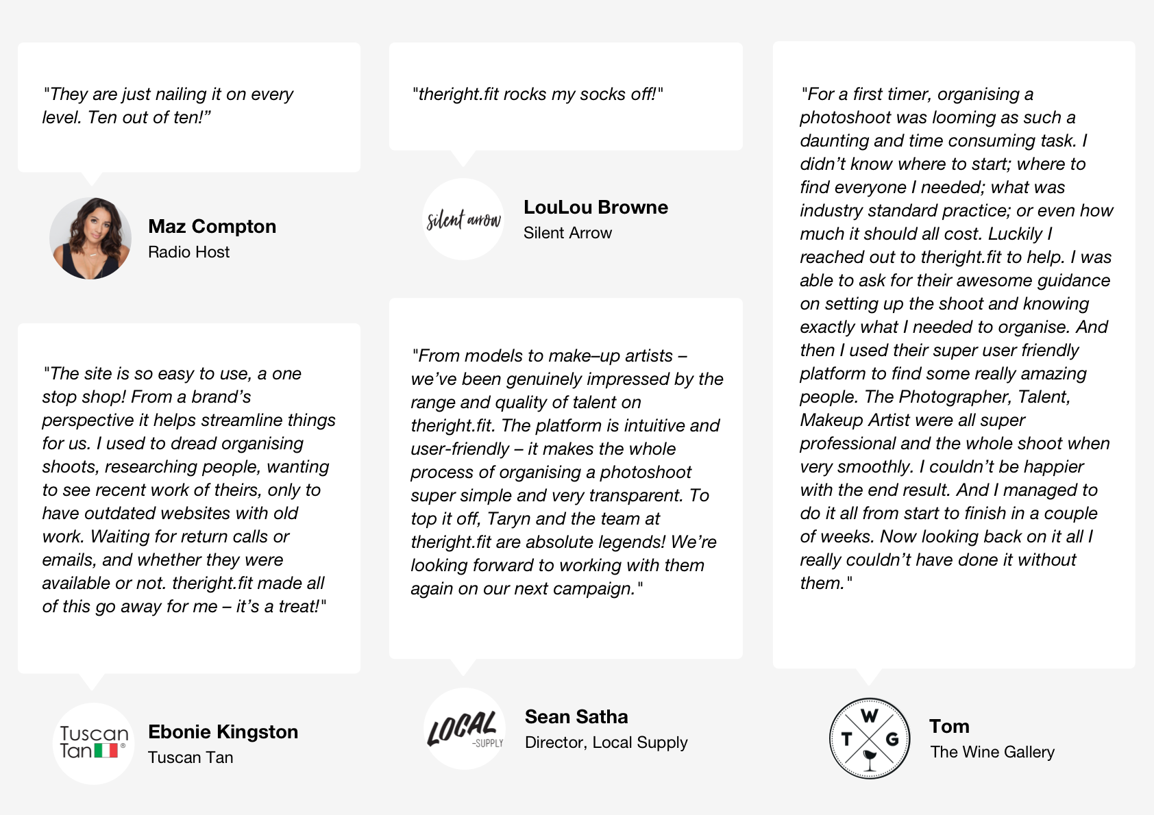 theright.fit is a 2-way marketplace, based out of Sydney, Australia, connecting brands and agencies with creative freelancers and talent. We created the first version of the website in 2015 from the ground up with a team of 5 people: 1 business person, 2 developers, 1 visual designer, and 1 product manager/UX designer.